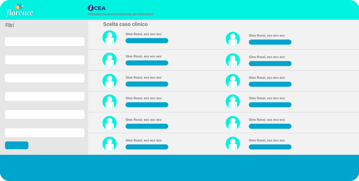 Florence ti mette a disposizione un archivio di casi clinici che può essere selezionato sulla base delle caratteristiche cliniche della persona da assistere impostate dall'utente.